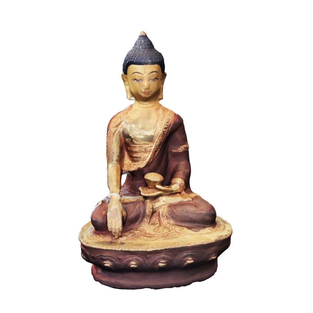 This beautiful Handmade Medicine Buddha Statue is crafted from durable copper with a premium partly gold-plated finish. The face is carefully hand-painted, showcasing intricate craftsmanship. Made in Nepal by skilled artisans, it’s a perfect addition to your home, or altar, or as a meaningful gift.